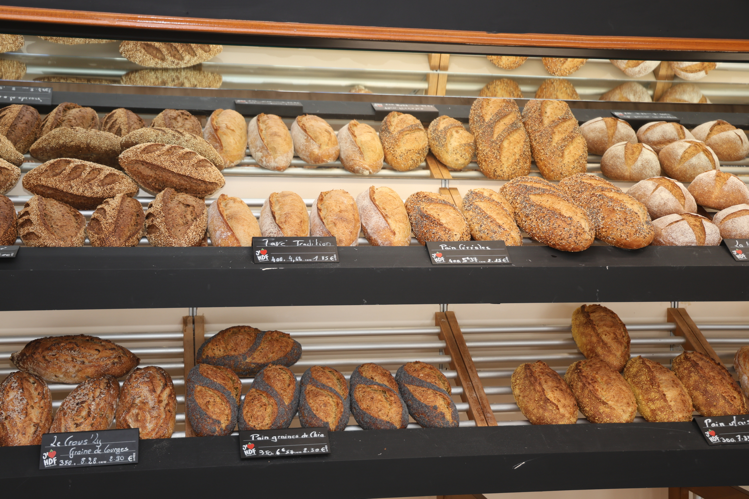 “Une partie des pains est au levain, avec des farines locales issues des blés des Hauts-de-France” souligne Yohan, très attaché aux circuits courts. L’offre inclut également un service proposant des salades, des sandwichs et un plat du jour. “Tout est cuisiné sur place, qu’il s’agisse d’un risotto aux crevettes, de cuisses de lapin fumées à la sauce aux champignons ou encore de lasagnes…”